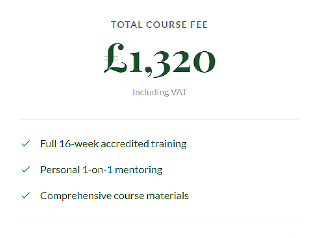 The course fee is £1320. We have bursaries and payment plans available. You can choose to pay upfront or in 2 4 or 6 instalments.